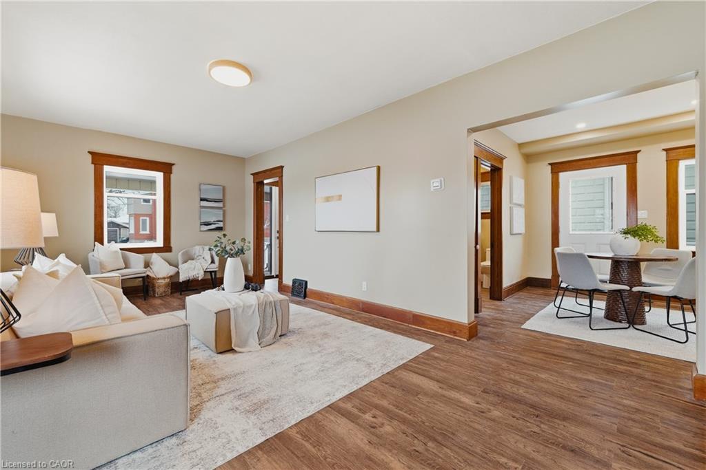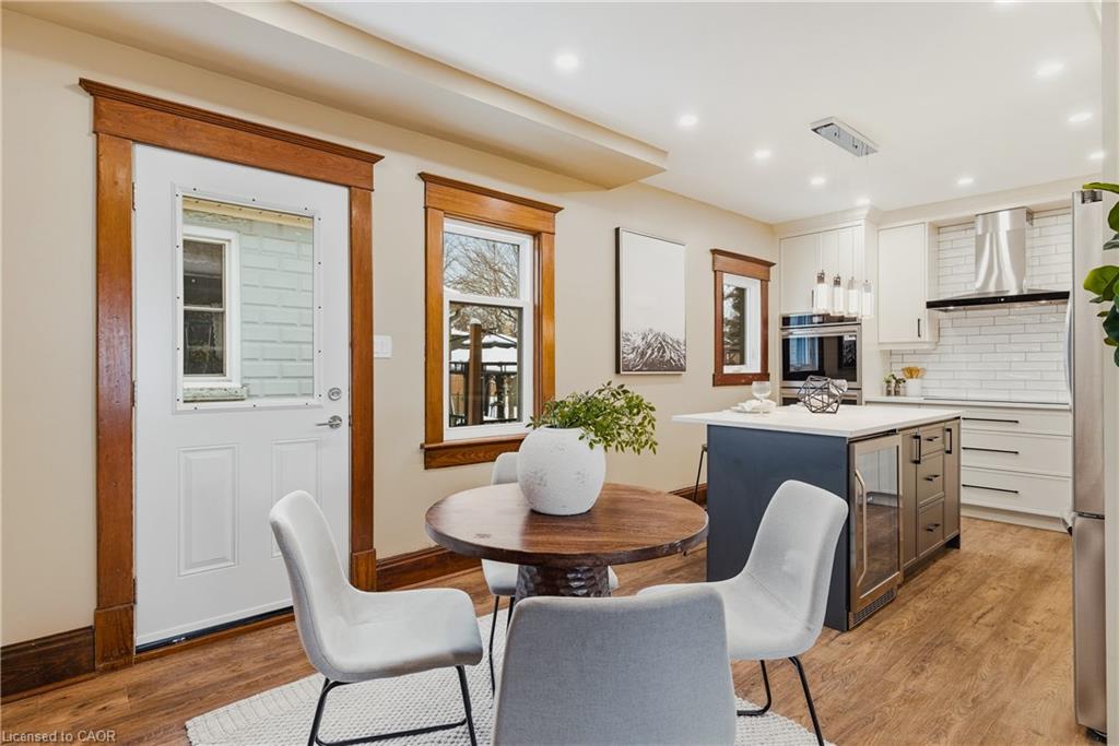 Welcome to 999 Vine Street, a fully modernized home in Cambridge's sought-after Preston neighbourhood where timeless character meets a comprehensive top-to-bottom renovation. This beautifully updated 3-bedroom, 3-bath detached home offers new flooring throughout, triple-seal custom windows, and all-new exterior entry doors that enhance efficiency while filling the home with natural light. The professionally designed custom kitchen (2026) is the centrepiece, featuring antique ivory cabinetry, quartz countertops, and a showstopping 72-inch island with seating and built-in beverage cooler. The premium appliance package includes double convection wall ovens, a 36-inch induction cooktop, JennAir hood fan, Frigidaire Gallery counter-depth fridge with water and ice, dishwasher, and a 50-bottle dual-zone wine fridge - ideal for cooking and entertaining alike. Offering a rare 1:1 ratio of bedrooms to full bathrooms, the layout features two bedrooms upstairs and a third on the lower level, providing excellent separation for guests, teens, or a home office while ensuring every bedroom is paired with its own full bath.