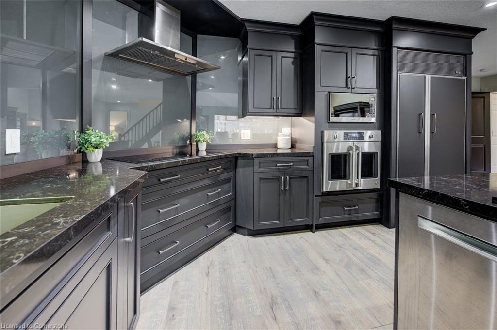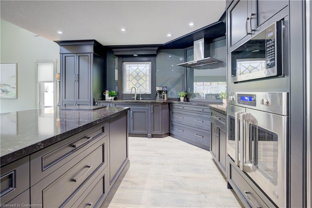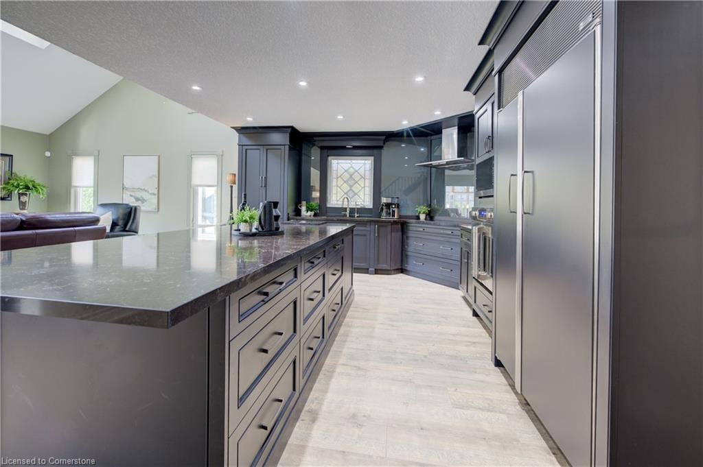 Welcome to The Mill Club - Doon South's address for refined, upscale living. This extraordinary bungaloft, the largest in the development, stands apart with over 4400 sq ft of living space. Custom-built four-season sunroom showcases the soaring cathederal ceilings. The open-concept, chef-inspired kitchen is a true showpiece masterpiece completed in 2025. Premium appliances including a Sub-Zero refrigerator and a GE Café French-Door Wall Oven, a stunning smoked glass backsplash, and an impressive bowed 10'x 5' quartz island with back-to-back cupboards. Exquisite custom cabinetry offers features such as built-in organizers, storage compartments, and pull-out drawers maximizing space while maintaining a refined, clutter-free aesthetic. A reverse osmosis water system and updated electrical complete this elevated culinary space.The main floor impresses with a dramatic two-storey great room featuring a 3-sided gas fireplace and elegant cove moulding, along with a formal dining room for refined entertaining. sophisticated main floor bedroom includes a 3-pc luxury bath with quartz countertops, shower, and upscale finishes. An updated powder room and main floor laundry add to the convenience of this level. Get ready to be impressed by the bungaloft! An outstanding open concept primary bedroom, complete with triple closets including a walk-in feature, offering exceptional storage and a sense of boutique-style luxury. Expansive finished basement offers over 1800 sq ft of versatile living space, including a large rec room with gas fireplacebuilt-ins, a workshop/office/craft room option, an outstanding entertaining servery and abundant storage. Ownership includes access to the Exclusive Mill Clubhouse. Step outside to a covered patio with BBQ hookup, perfect for outdoor gatherings. Located just steps from the Walter Bean Trail, Doon Valley Golf Course Grand River, Hwy 401, and local amenities, this home delivers an unparalleled blend of luxury and craftsmanship.