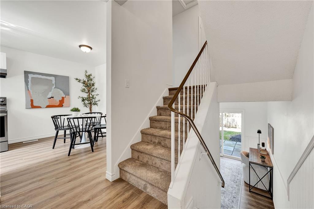 Welcome to 314 Bluevale, a freshly updated end-unit townhouse offering a blend of style, function, and convenience. This multi-level home features 3 bedrooms and a layout designed to maximize both privacy and gathering space. The main floor boasts a bright kitchen with white cabinetry, stainless steel appliances, and a charming eat-in dining area, while the spacious living room below is perfect for relaxing or entertaining with its walkout access to a fully fenced yard. Upstairs, three well-sized bedrooms provide plenty of space for family, guests, or a home office. Thoughtful upgrades, including new flooring, fresh paint, and modern finishes, make this home move-in ready. One standout advantage of this property is the designated parking space located directly behind the unit, offering unparalleled convenience—while most neighbours walk from the communal lot, you can enjoy easy, direct access to your home. The fenced backyard adds a private outdoor retreat for gardening, play, or summer barbecues. Ideally situated near schools, shopping, parks, and transit, this home is an excellent choice for first-time buyers, downsizers, or investors looking for a low-maintenance property in a central location. With its combination of updates, unique parking advantage, and end-unit privacy, 314 Bluevale is ready to welcome its next owners.