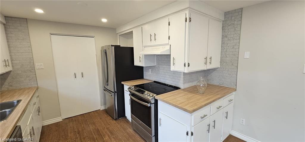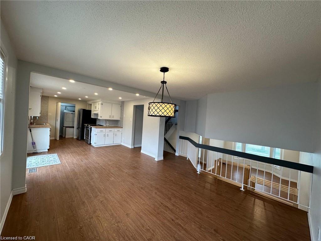 Welcome to this beautifully maintained and freshly updated three-bedroom, two-bathroom home offering over 1,500 sq. ft. of living space on a quiet, family-friendly crescent. The home’s impressive curb appeal and thoughtful layout make it a perfect choice for anyone seeking comfort and convenience. Step inside to a bright 9 × 9 ft foyer leading to a spacious king-size living room with large windows that fill the space with natural light. The open-concept design seamlessly connects the living area to the elevated dining room, creating an ideal flow for entertaining. The modern eat-in kitchen features new countertops, abundant white cabinetry, stainless-steel appliances including a brand-new dishwasher, and sliding doors that open onto a two-tier deck and fully fenced backyard—perfect for family gatherings and summer barbecues. A convenient main-floor powder room and laundry located just off the kitchen add everyday practicality. Upstairs, you’ll find three generous bedrooms and a stylishly updated full bath. This three-level backsplit design ensures easy movement between levels, and with the home being carpet-free throughout, maintenance is effortless. Additional highlights include an attached garage with automatic opener and interior access, three total parking spaces, and recent updates to the roof, windows, and doors, providing energy efficiency and lower utility costs. Freshly painted in modern tones, the home is move-in ready. Ideally located within walking distance to four schools, close to shopping, public transit, and the Expressway, this property offers a rare combination of space, style, and convenience. A true AAA home that you’ll be proud to call your own.