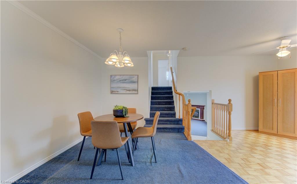 The sun-filled living room offers an abundance of natural light, creating a warm and welcoming atmosphere. Connected in the dining room for additional space for larger gatherings and entertaining. Upstairs, you’ll find three well-sized bedrooms along with a light filled 4-piece bathroom.