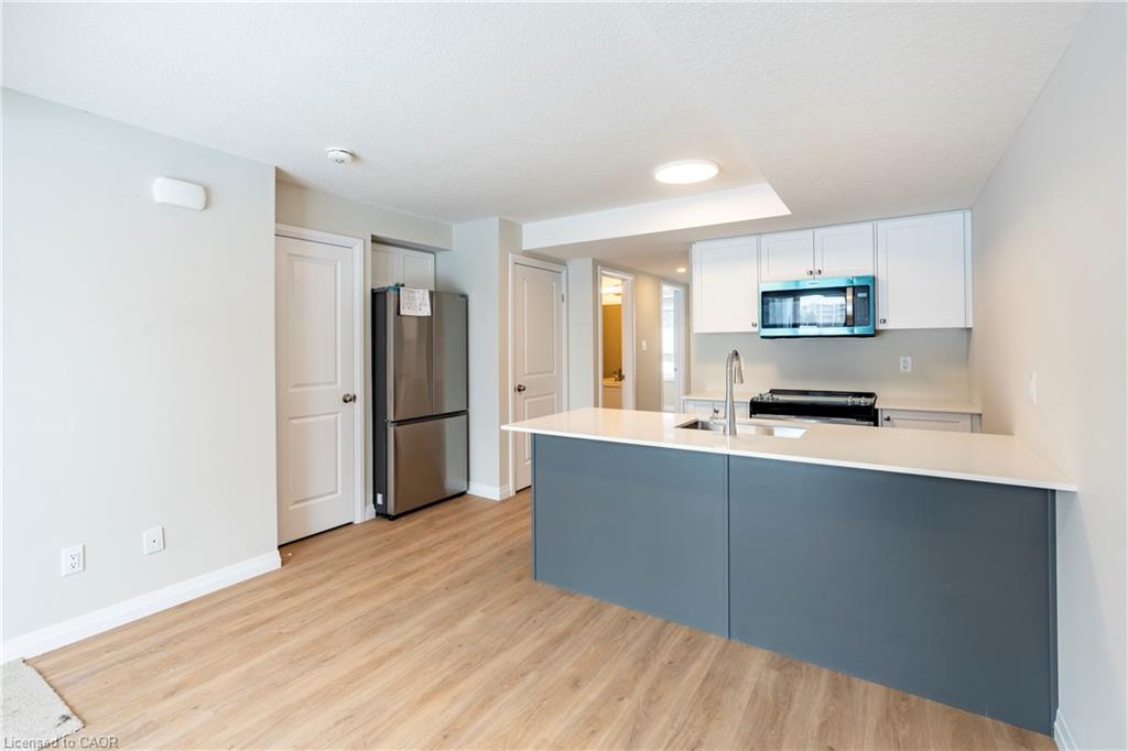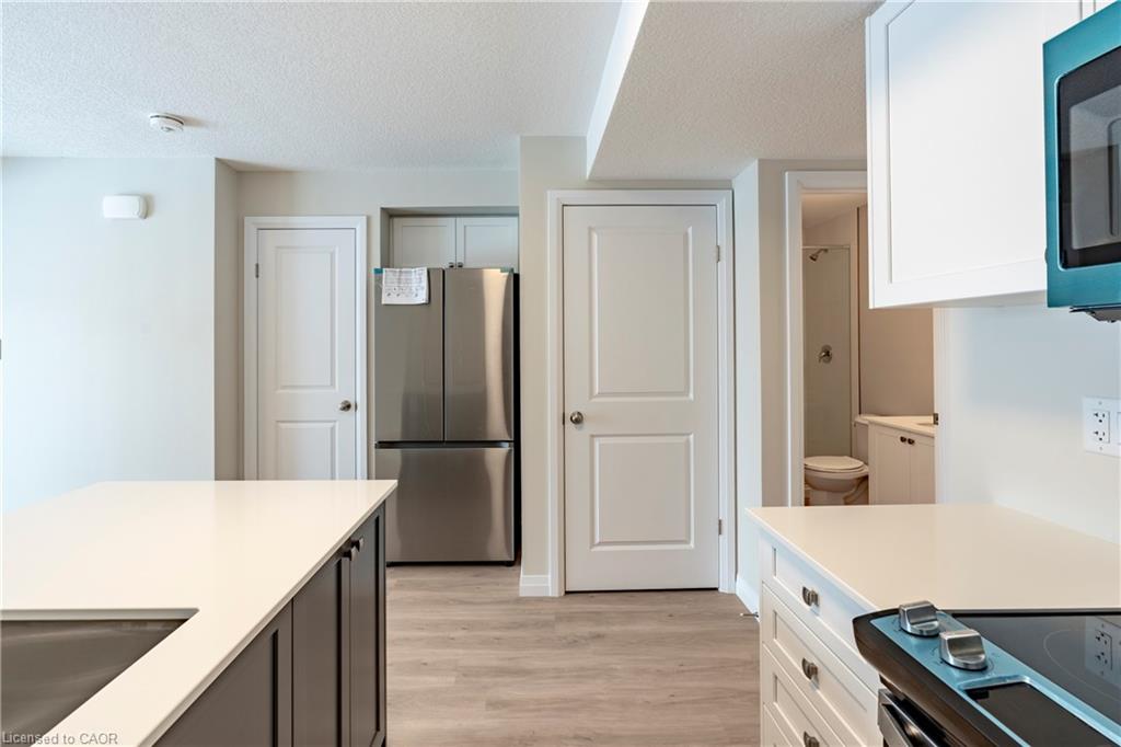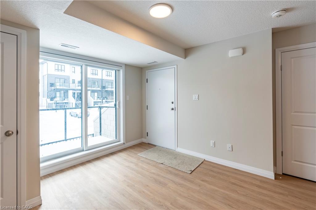 BRAND NEW at ARBOUR PARK by Cook Homes! This 2-storey stacked townhome delivers on quality finishes, unique upgrades, and a floorplan that offers two private bedrooms and two full bathrooms! Located just across the street from the Laurel Creek Conservation Area, you are always just a short walk to peaceful natural environment! A short trip will have you at the St. Jacobs Farmers' Market where fresh produce and baking will become the norm in your home. Just down the street from University of Waterloo, the David Johnston R&T Park, highway 7/8 access, and an LRT stop, this location proves to be convenient and within reach of some major amenities, employers, at attractions in Waterloo! At home, this brand new townhome delivers on parking, multiple outdoor balconies, and the right amount of space for your needs! With a custom kitchen layout, this unit offers a kitchen island with breakfast bar, full stainless-steel appliance package, quartz countertops, and ample storage cabinetry. A main-floor bedroom, workspace den, 3-piece bathroom with glass shower, and stacked laundry set make for effective use of the main level. Find the primary bedroom, ensuite bathroom, and private upper balcony all from the second floor. With so much offered across 885 square feet, this home is ready for its first lucky occupant! Parking included. Sign the lease and enjoy today!