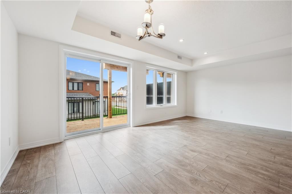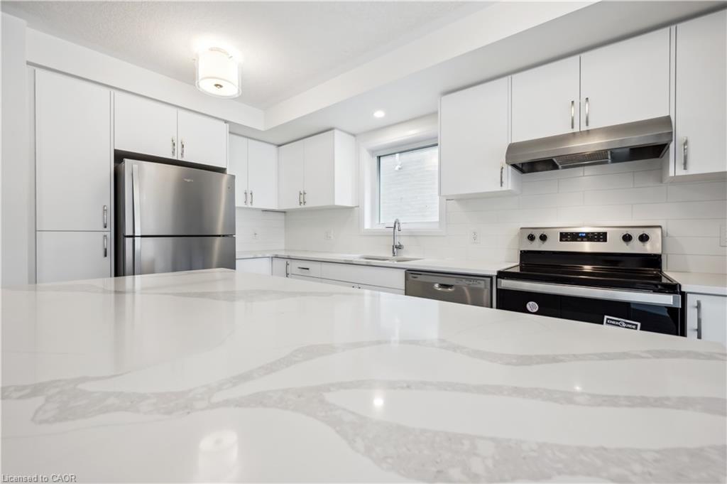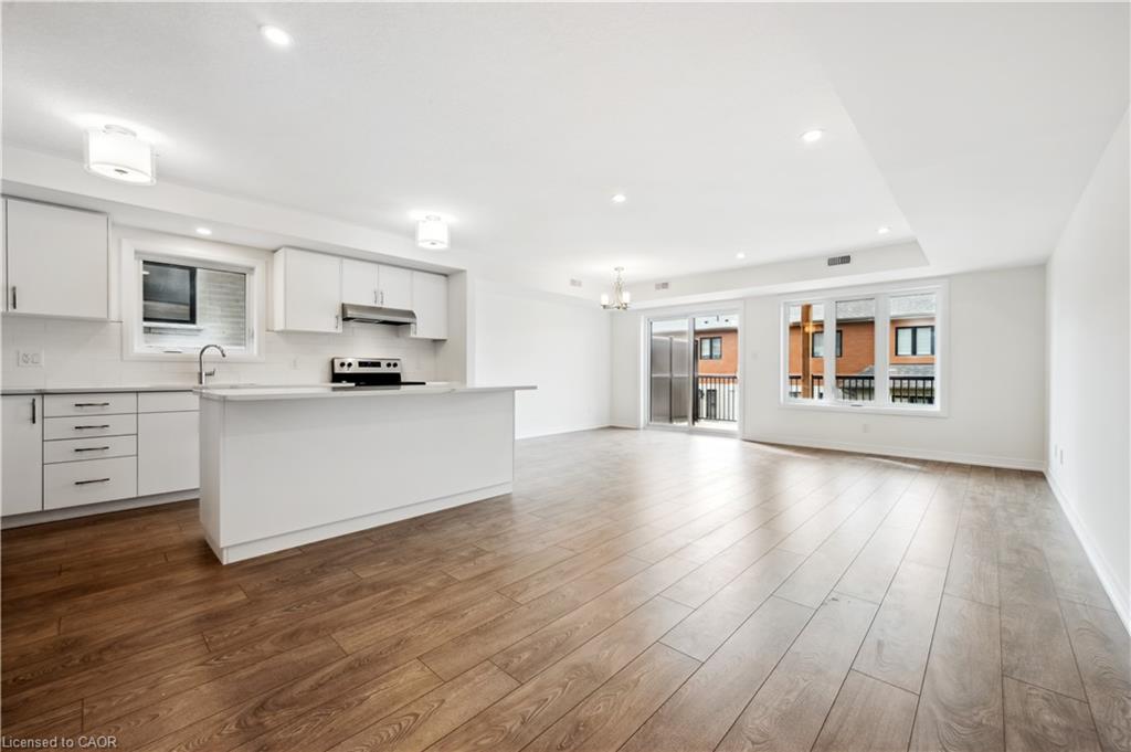Brand new, ready now, and available for a quick closing, this gorgeous 3 bedroom, 2.5 bath condo townhouse is located in sought-after Harvest Park in Doon South. The kitchen is sure to impress with plenty of cabinetry, a large island, quartz countertops, and stainless appliances. The great room is of very generous proportions and sliders from the dining area lead to a spacious deck. On the way to the upper level, you'll love the bonus lounge that is the perfect spot for a family room or home office. Upstairs are 3 bedrooms plus a laundry room. The primary suite features a second, private balcony , a 3 piece bath and lots of closet space. A main 4 piece bath completes this level. One surface parking space. Condo fees include building and grounds maintenance as well as High Speed Internet. This is an excellent location - near Hwy 401 access, Conestoga College and beautiful walking trails. SALES CENTRE LOCATED at 158 Shaded Cr Dr in Kitchener - open Monday to Wednesday, 4-7 pm and Saturday, Sunday 1-5 pm .