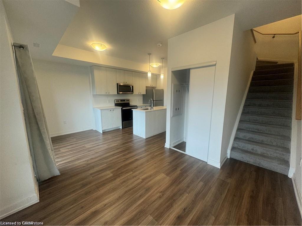 Welcome to this beautifully designed 2-bedroom, 1.5-bath stacked townhouse, ideally situated in the vibrant and highly sought-after Laurentian Commons community. This modern and stylish unit offers the perfect blend of comfort, convenience, and urban living, with all the amenities you need just steps from your door.The home features a thoughtfully laid-out floor plan across two levels. On the second floor, you'll find a welcoming entrance hall, a spacious and contemporary kitchen complete with sleek quartz countertops and stainless steel appliances, and a convenient powder room. The open-concept living and dining area flow seamlessly onto a private balcony, providing scenic views of the park and road—perfect for morning coffee or evening relaxation. Upstairs on the third floor, you’ll find two generously sized bedrooms, a full 4-piece bathroom with a bathtub, and an in-unit laundry room for added convenience. One of the bedrooms also includes a private balcony, offering an additional outdoor retreat. This home comes with one designated parking space and is finished with modern touches throughout, ensuring a stylish and comfortable lifestyle. Located in the heart of Laurentian Commons, you’ll enjoy easy access to Highway 7/8, making commuting a breeze. You’re also just moments away from an abundance of local amenities including McLennan Park, shopping centers, restaurants, schools, and public transit. Utilities are extra. Don’t miss this opportunity to live in one of the most desirable communities in the area—schedule your viewing today!