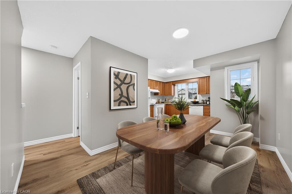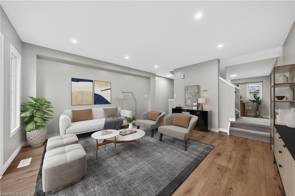 Welcome to this beautifully updated row townhouse, offering three generously sized bedrooms and two bathrooms—perfect for families or those seeking extra space. Freshly painted and featuring new flooring throughout, this home is enhanced with modern lighting, including stylish new pot lights in the living room that create a bright and inviting space. Enjoy low common element fees that cover snow removal, lawn care, landscaping, and visitor parking for added convenience. With no rear neighbours, you’ll appreciate the privacy, along with a spacious back deck off the living room—ideal for entertaining or relaxing. The home also features a large laundry room with plenty of storage space, a private parking space, and a garage. Situated in a quiet, family-friendly neighbourhood close to shopping, restaurants, transit, and schools, and within walking distance to scenic trails, this home offers the perfect blend of comfort, convenience, and lifestyle.