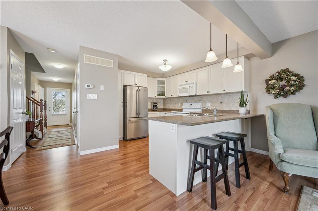 Tucked away in the highly sought-after Chicopee Hills neighborhood, this meticulously maintained one-owner freehold townhome offers the rare privacy and natural light of a premium end-unit. The interior boasts a bright, open-concept main floor designed specifically for entertaining, flowing effortlessly from the kitchen to the living spaces. Upstairs, the primary bedroom serves as a true retreat, featuring a spacious walk-in closet and a private 3-piece ensuite, complemented by two additional bedrooms and a 4-piece bathroom. The unfinished basement provides incredible future potential with a rough-in already in place for an additional bathroom, while the home's unbeatable location keeps you steps from Chicopee's ski slopes and hiking trails, top-tier schools, and a wealth of local amenities with quick access to the 401.