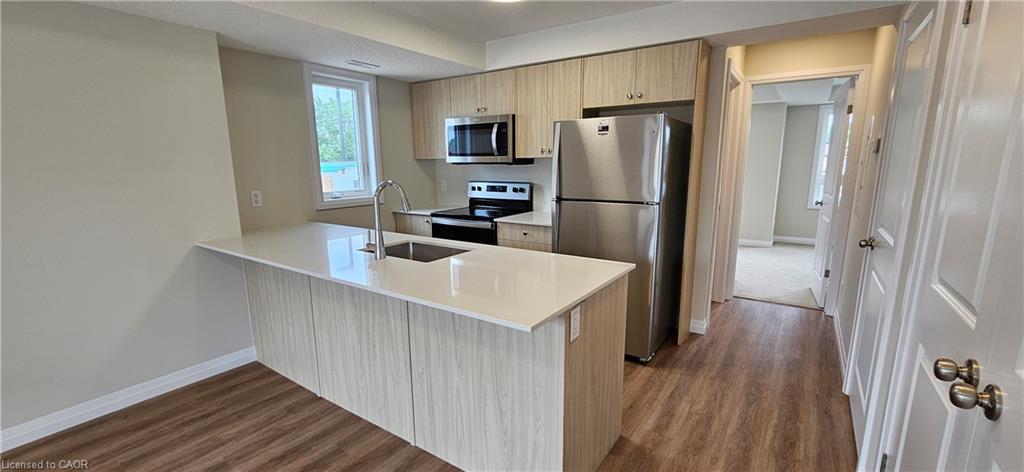 ARBOUR PARK – THE TALK OF THE TOWN! Discover North Waterloo’s most anticipated new address at Arbour Park, where modern living meets natural beauty. These newly built stacked townhomes are perfectly positioned beside the peaceful Laurel Creek Conservation Area, offering the ideal combination of tranquility and urban convenience. Commuting is effortless with quick access to Highway 85 and direct connectivity to the 401, while parks, schools, shopping, and dining are all just moments from your doorstep. Now available is the sought-after Alder model, offering 635 square feet of thoughtfully designed living space. This bright, open-concept layout features one spacious bedroom, a modern 4PC bathroom, stylish finishes, and your own private balcony to enjoy morning coffee or unwind at the end of the day. You’ll love the contemporary kitchen with stainless steel appliances, the convenience of in-suite laundry, and the comfort of being tucked away in a mature, established neighbourhood. Utilities including heat, hydro, gas, water, and hot water heater are the responsibility of the tenant. A full credit report, including score and history, is required with all applications. Available for immediate occupancy, this is your opportunity to experience modern living in one of Waterloo’s most desirable communities. Available immediately. Photos are virtually staged.