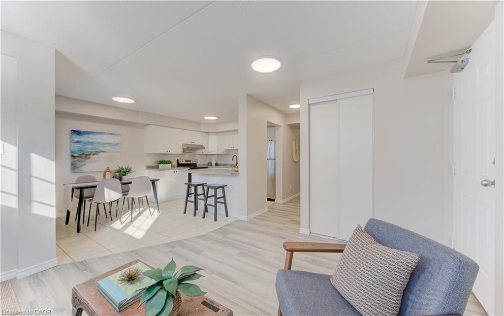 Modern, bright, and move-in ready, this over 1,100 sq ft, carpet-free condo offers comfort, convenience, and an unbeatable location. With 2 parking spots, including one right outside your private entrance, unloading groceries becomes the easiest part of your day. Step inside to an open-concept living, dining, and kitchen area filled with natural light from large windows. The kitchen has been refreshed with new countertops, an inviting island with a breakfast bar, updated faucets, a brand new stove, stainless steel appliances, including a dishwasher, and more than enough cupboard space for every pot, pan, and snack stash. All 3 bedrooms are generously sized with large closets and newly updated closet doors, giving you the flexibility to create a home office, gym, or the perfect setup for roommates or a growing family. The 4-piece bathroom includes a relaxing soaker tub, plenty of storage, newer countertops and faucets, and an updated shower head. You’ll love the convenience of in-suite laundry, plus the oversized utility room that handles all your storage needs with ease. With a new two-stage furnace, this home is as comfortable as it is functional. Outside, you’re surrounded by the best of Stanley Park living. The condo amenities include, a small, private playground, and ample visitor parking. It’s just a 3-minute walk to Stanley Park Mall, you’ll find Zehrs Canadian Tire, and more. Nature lovers will appreciate being steps from the Dom Cardillo Trail, a 5 km biking and hiking path nestled between the Stanley Park Conservation Area and Idlewood Natural Area. Schools, public transit, and quick access to Highway 7 and the 401 make everyday life smooth and convenient.