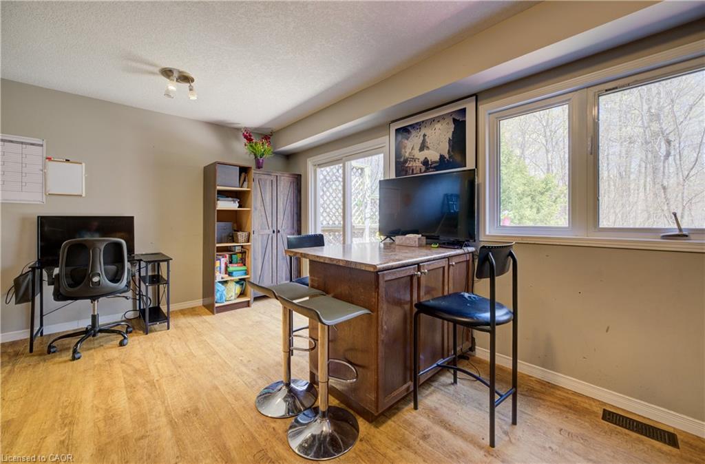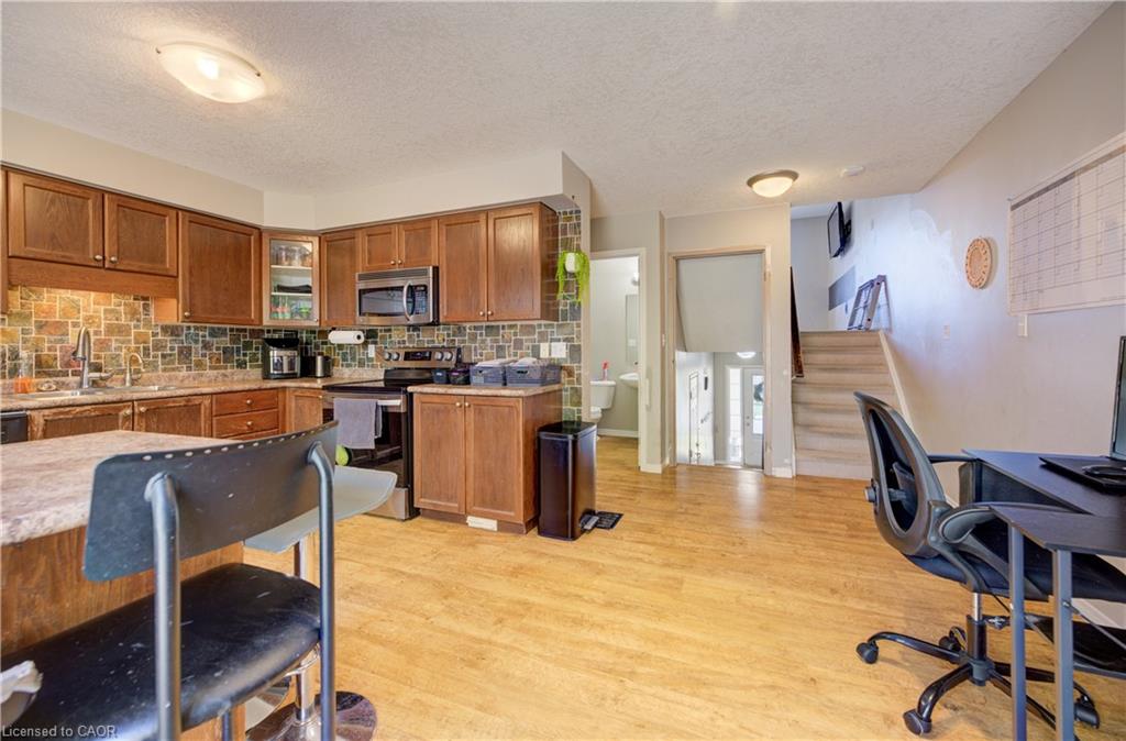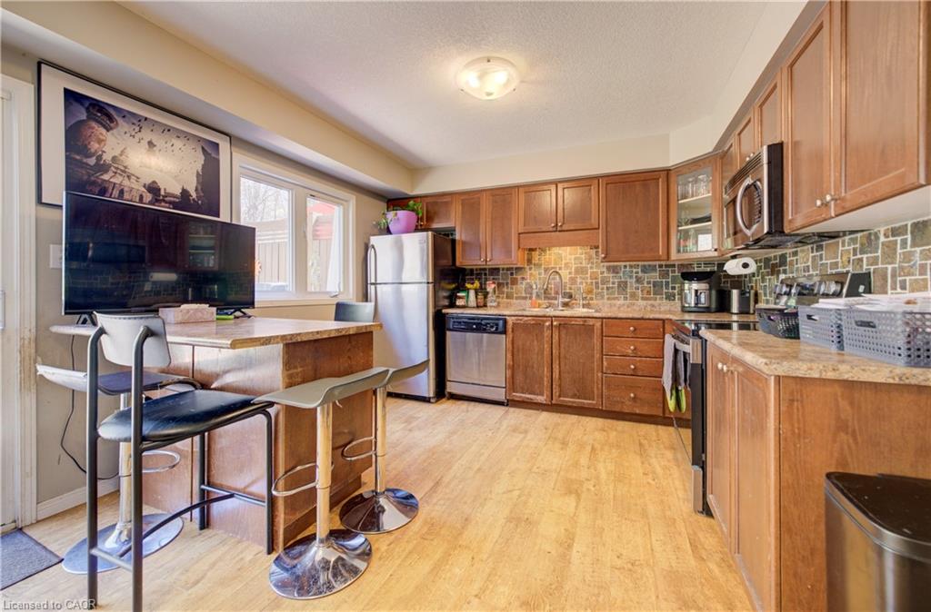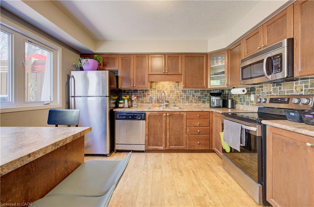 NO REAR NEIGHBOURS BACKING ONTO GREENSPACE! Welcome to #E34-110 Activa Avenue located in the highly sought-after Laurentian Hills neighbourhood of Kitchener. Offering a functional multi-level layout and a prime location, this home is perfect for first-time buyers, families, or investors. The walk-in level welcomes you with a spacious foyer and convenient front closet, providing a practical entryway for everyday living. On the second level, you’ll find the heart of the home featuring a bright and open kitchen complete with stainless steel appliances, a breakfast bar, and plenty of cabinet space. The adjoining dining area offers sliding doors leading to the large back deck—perfect for outdoor dining and entertaining—as well as a convenient laundry room nearby. Just a few steps up, the oversized living room offers a bright and inviting space to relax and unwind.