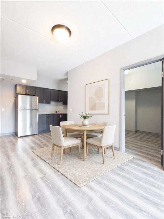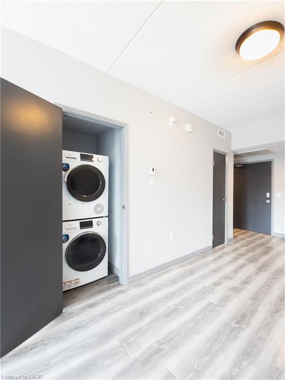Parents and investors alert! One bedroom plus large den, used as a second bedroom with an interior window! Welcome to this clean, bright and airy, 771 square feet apartment in the heart of Waterloo, walking distance to both U of Waterloo and Wilfred Laurier, and lots of amenities and services. The spacious primary bedroom has its own private ensuite. There is also an additional three piece bathroom in the unit. Den is big enough to be used as the second bedroom. Enjoy the convenience of in suite stacked washer/dryer and complete control of your heating and cooling. This carpet free unit has an open concept layout from the well equipped kitchen to dining area to living room, with a beautiful balcony for you to enjoy your morning coffee or just relax after a long work day or school. Unit is vacant and ready for you to move in. Don't let this one slip away! Some photos are virtually staged.