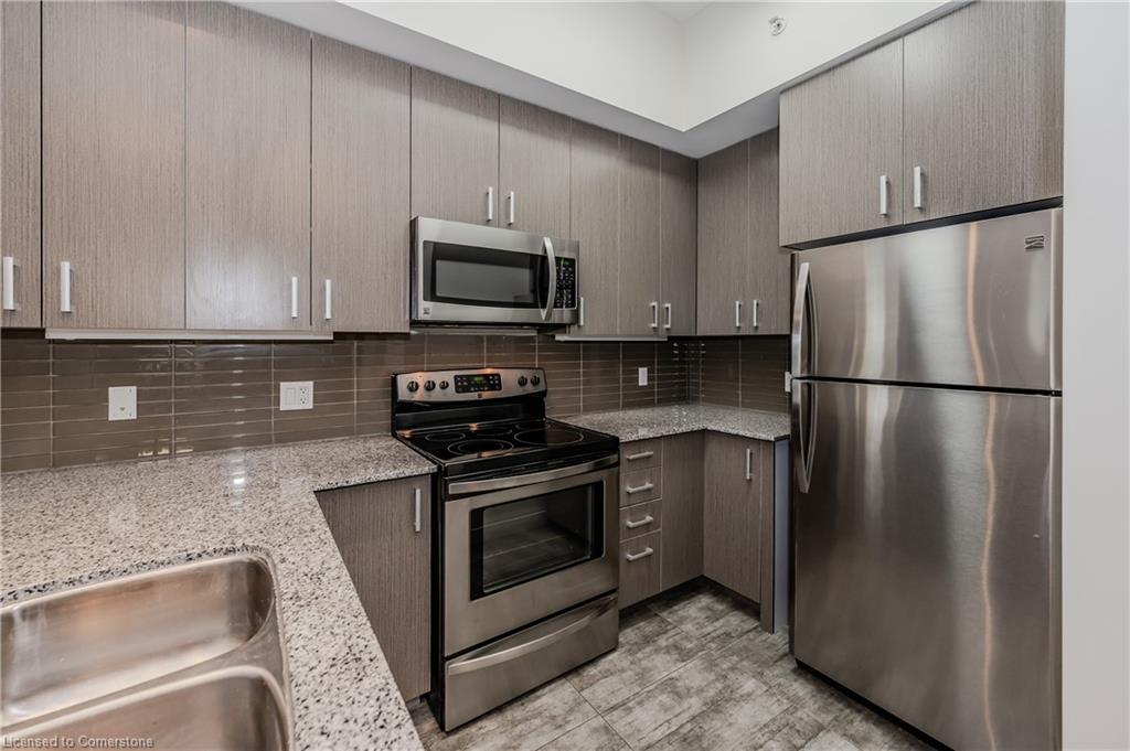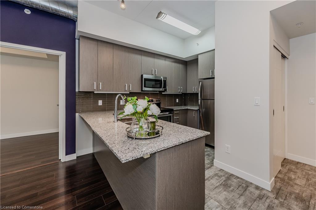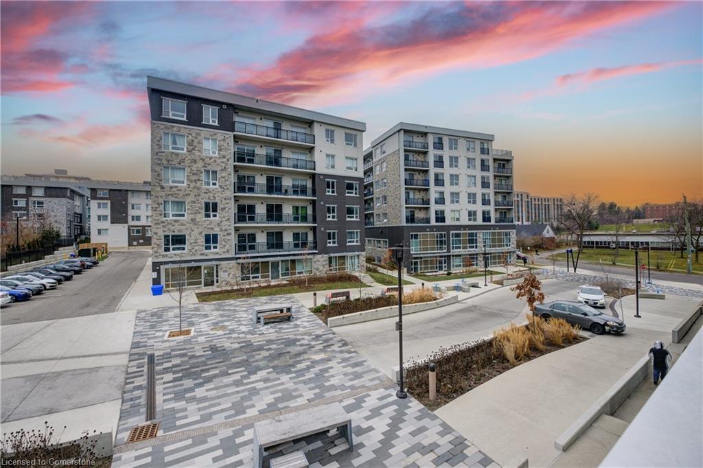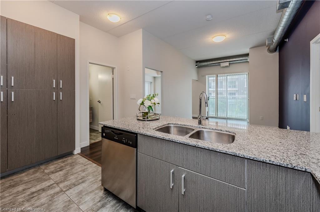 THIS IS IT! VACANT unit with flexible availability. Located steps away from both Wilfrid Laurier University, University of Waterloo, AND Conestoga College, Waterloo campus! This Sage III Hickory Suites Building has one of the best locations in the complex. 2 bedrooms with large windows and access to the balcony. 2 full bathrooms as well make this an ideal home for not only students, but also youn professionals, or savvy investors. Note almost all utilites are included in the condo fees. The upgraded kitchen includes granite counteres, a built-in dishwasher, breakfast bar, and beautiful subway tile backsplash. The WEST-facing windows allow for TONS of afternoon sun! Enjoy the covered balcony for sitting out and enjoying a few rays of sunchin. Quality flooring throughout. And to top it all off this unit includes 1 underground parking spot. Book your SHOWING today! (note some photos were taken before sliding doors were installed, and note when these units were built they were sold as 1 bed plus den).