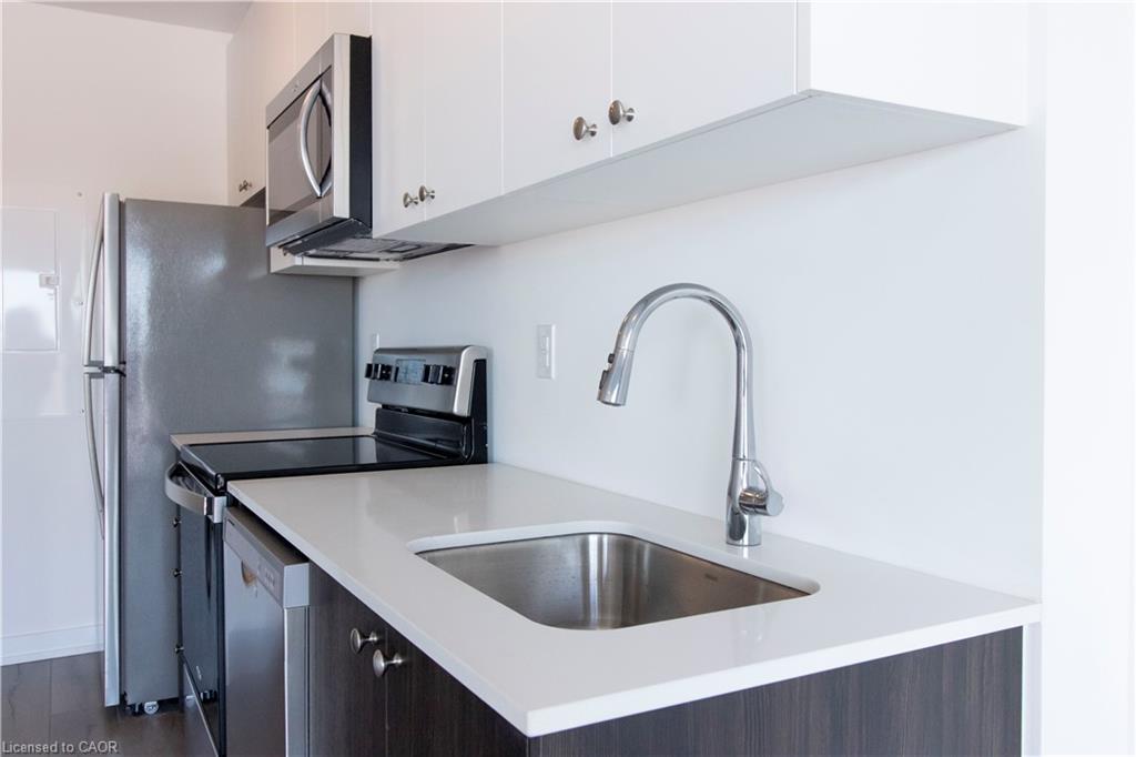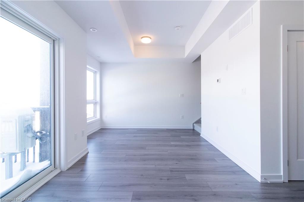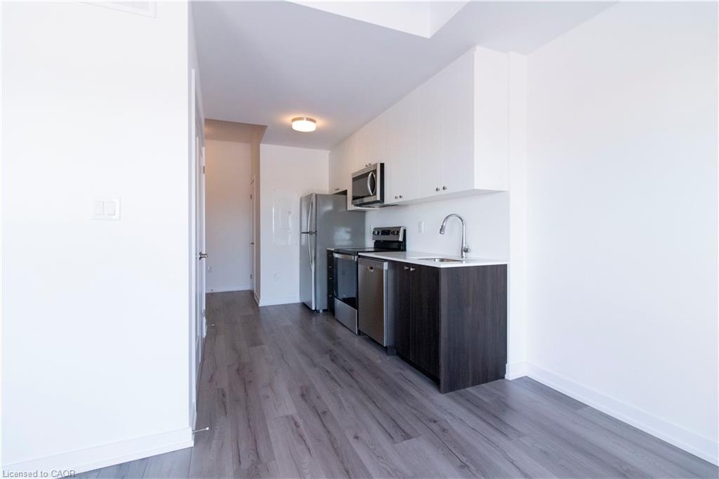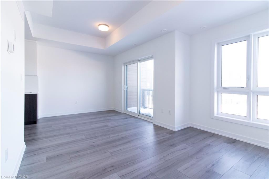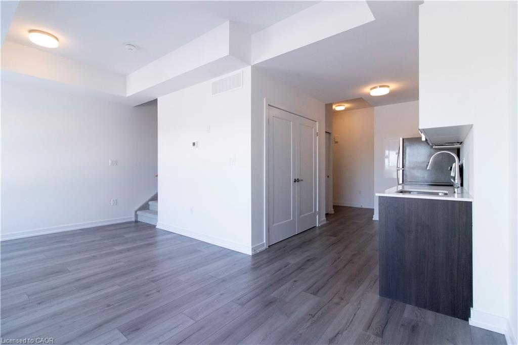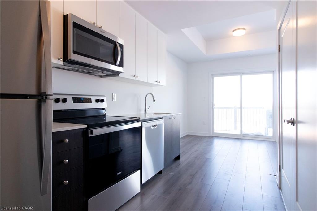 Welcome to this brand new 2-Bed, 2.5 Bath condominium townhome in Kitchener's beautiful Parkside community, where convenience and community intertwine to create a haven for everyday living. Nestled next to this family-centric neighbourhood are the expanses of McLennan Park and Elmsdale Park, offering a tranquil escape or variety of outdoor activities. Within this upper unit, discover a meticulously crafted two-storey space spanning over 1000 square feet. Enjoy the expanse of two generously proportioned bedrooms with two full bathrooms, a powder room on the main level, as well as an ample living room, dining room, kitchen with bathroom on the main level. The two level experience not only enhances privacy, but each level also boasts its own balcony allowing clear views of the hillside at McLennan Park, and allowing ample natural light to flow throughout the unit. Decor package upgrades such as quartz countertops and Whirlpool/Bloomberg appliance package, soft close cabinets, deep fridge upper cabinet with gable, and laminate flooring throughout. Venturing beyond the neighbourhood is effortless, with a two-minute drive to HWY 7/8, granting seamless access for commuters. Should you prefer the convenience of public transit, an onsite stop is just outside your doorstep, ensuring smooth journeys to any destination. Just a 5 minute walk away sits Laurentian Power Centre, boasting an array of amenities to cater to your every need. From a large Zehrs grocery store to home improvement essentials at Lowes, and healthcare services at the walk-in clinic, every convenience is within easy reach.