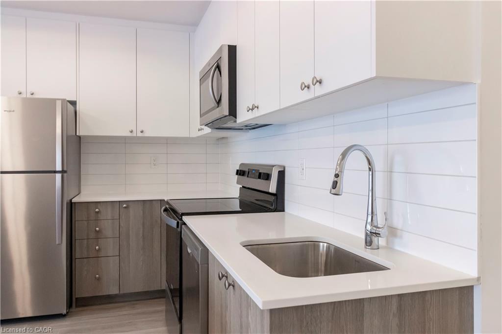 Welcome to this brand new 2-bedroom condominium townhome in Kitchener’s sought-after Parkside community, just steps from McLennan Park and Elmsdale Park. This multi-level upper unit features an open-concept living, dining, and kitchen area with a private balcony and powder room on the main level. The second storey offers two well-sized bedrooms, including a comfortable primary suite, along with a full bathroom—providing great separation of space. Modern finishes include quartz countertops, Whirlpool/Blomberg appliances, soft-close cabinetry, and laminate flooring throughout. Conveniently located minutes to HWY 7/8, with public transit at your doorstep and a short walk to Laurentian Power Centre for shopping, dining, and everyday essentials.