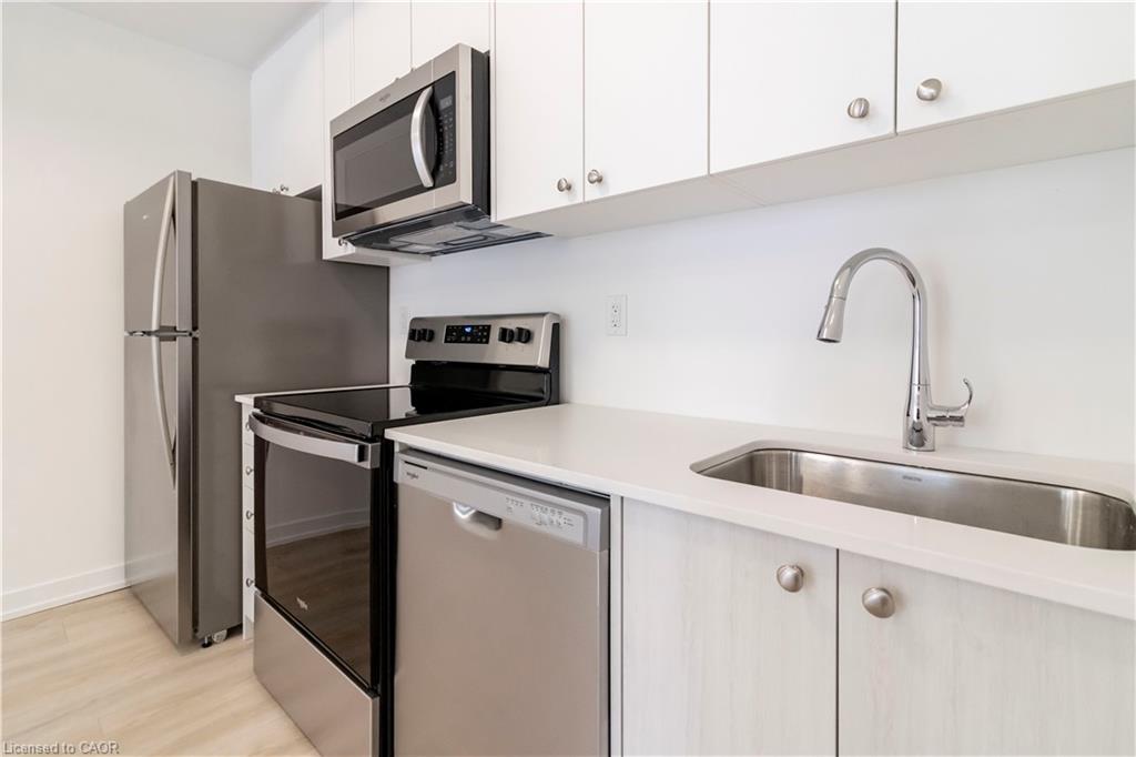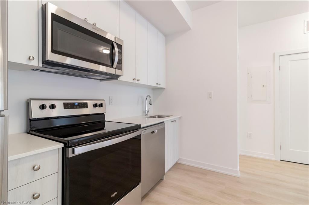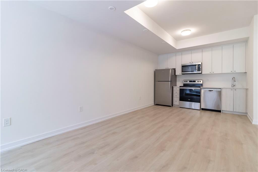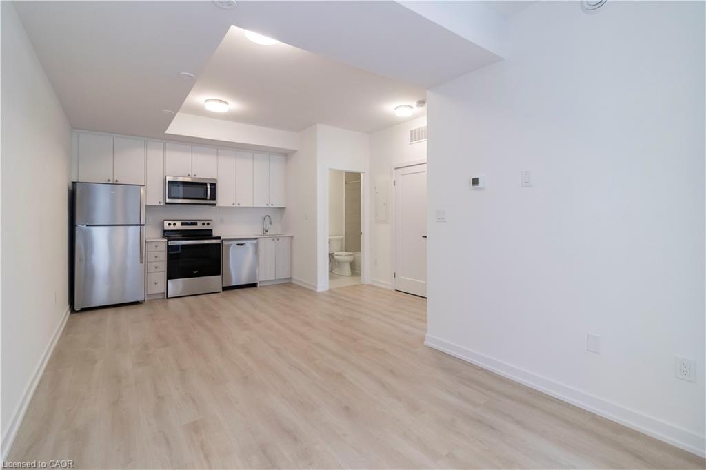 Available for Lease! Newly built condominium townhome in Kitchener’s sought-after Parkside community—a neighbourhood where thoughtful urban design meets the quiet charm of suburban living. Set against the backdrop of McLennan and Elmsdale Parks, this location offers both a serene escape into nature and an abundance of recreational options just moments from your doorstep. This lower-level residence presents a well-appointed single-storey layout encompassing 560 square feet of carefully considered space. The open-concept living and dining area invites effortless flow and natural light, complemented by a spacious bedroom and a functional, modern kitchen. Step outside to a large private terrace —ideal for open air dining or quiet reflection in a peaceful, outdoor setting. Positioned for effortless connectivity, the home is just a two-minute drive from HWY 7/8, offering direct access to regional and intercity travel. For those relying on public transit, a convenient stop is located immediately outside, making your daily commute smooth and accessible. Only a short five-minute walk away lies Laurentian Power Centre, where everyday essentials and lifestyle amenities converge. Whether picking up groceries at Zehrs, tackling home projects with supplies from Lowe’s, or accessing health services at the local walk-in clinic, this address places every convenience within easy reach.