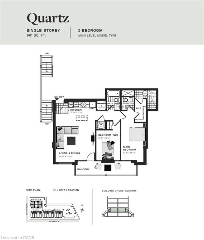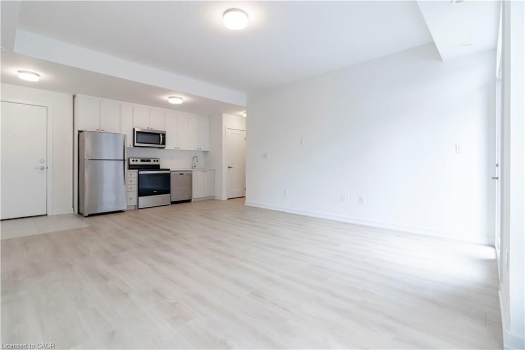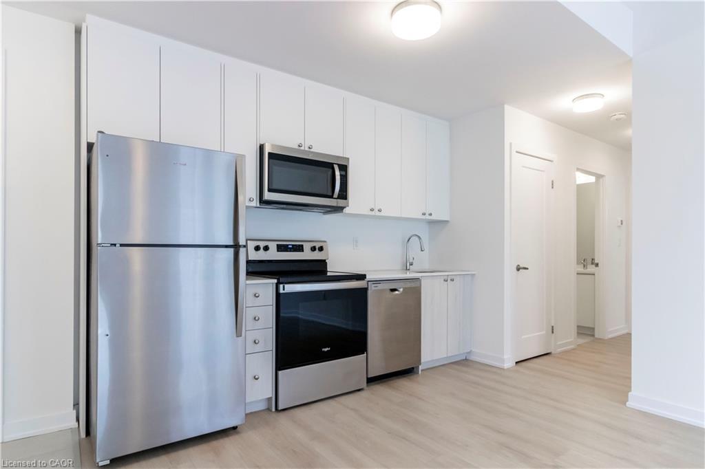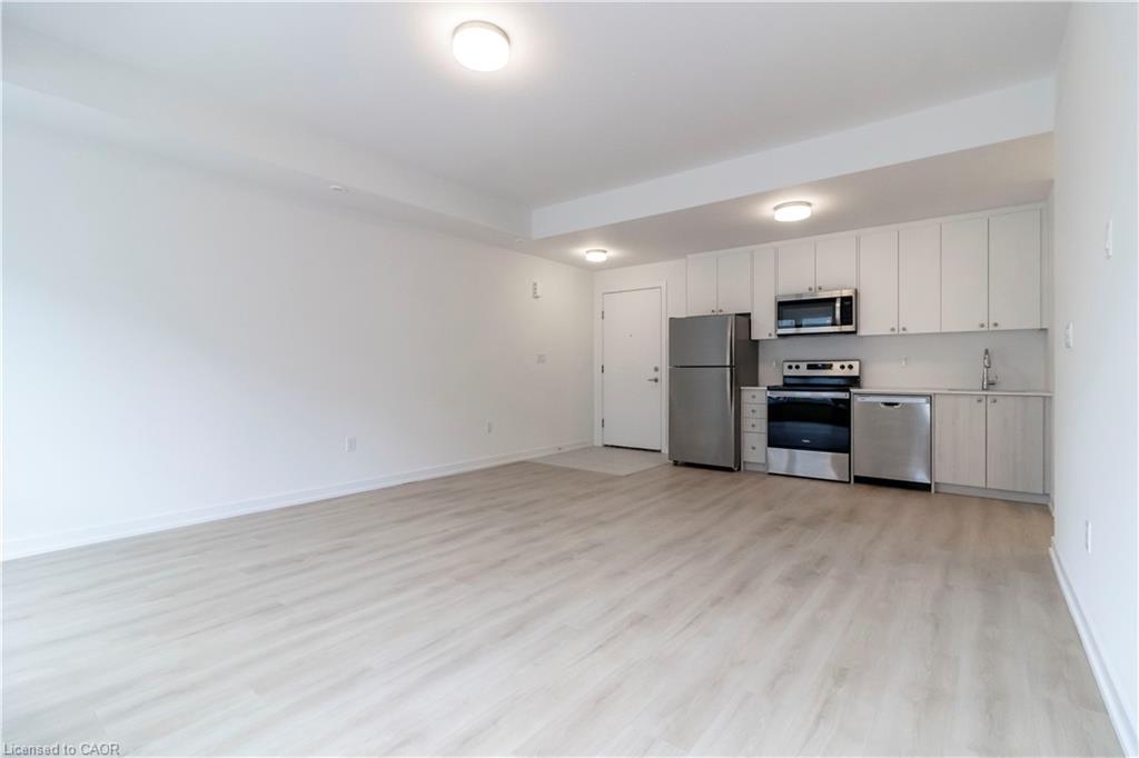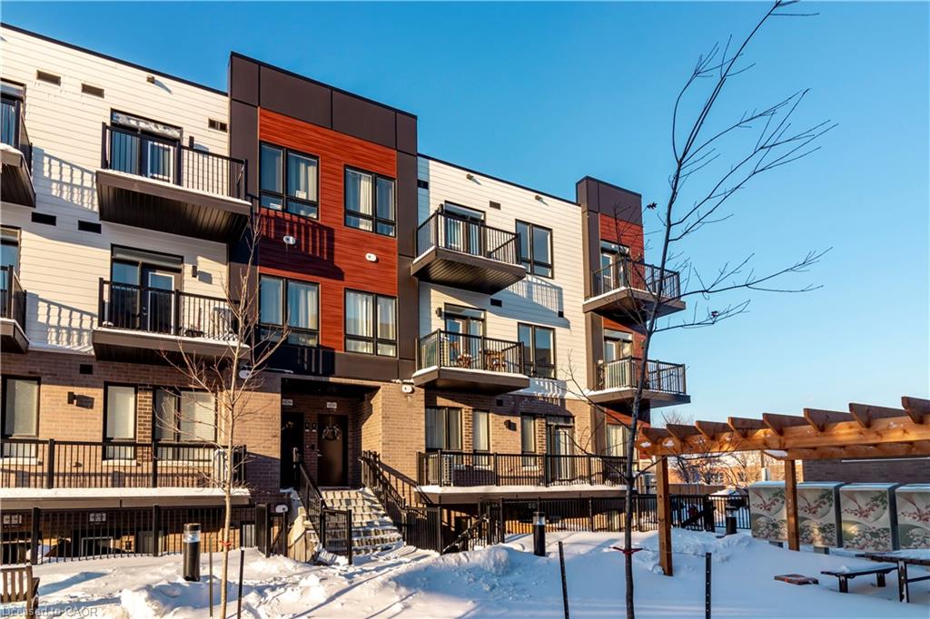 Welcome to this brand new 2-bedroom condominium townhome in Kitchener’s desirable Parkside community, where modern convenience meets a welcoming, family-friendly neighbourhood. Ideally situated near McLennan Park and Elmsdale Park, residents can enjoy easy access to green space, walking trails, and outdoor recreation. This single-storey main level unit offers approximately 961 sq. ft. of thoughtfully designed living space, featuring a bright and open-concept living and dining area that seamlessly connects to a modern kitchen—perfect for both everyday living and entertaining. Step out onto your private balcony, extending your living space outdoors. The layout includes two well-sized bedrooms, including a primary suite complete with walk-in closet and private ensuite, along with a second full bathroom for added convenience. Clean lines and efficient design create a comfortable, functional flow throughout the home. Upgraded finishes include quartz countertops, Whirlpool/Blomberg appliance package, soft-close cabinetry, laminate flooring throughout, and contemporary kitchen detailing, offering a stylish and move-in-ready space. Located just two minutes from HWY 7/8, commuting is simple and efficient, while public transit is right outside your door. A short 5-minute walk to Laurentian Power Centre provides access to groceries, dining, retail, and essential services—everything you need within reach. Enjoy the ease of single-level living in a connected and growing community—Parkside living at its finest.